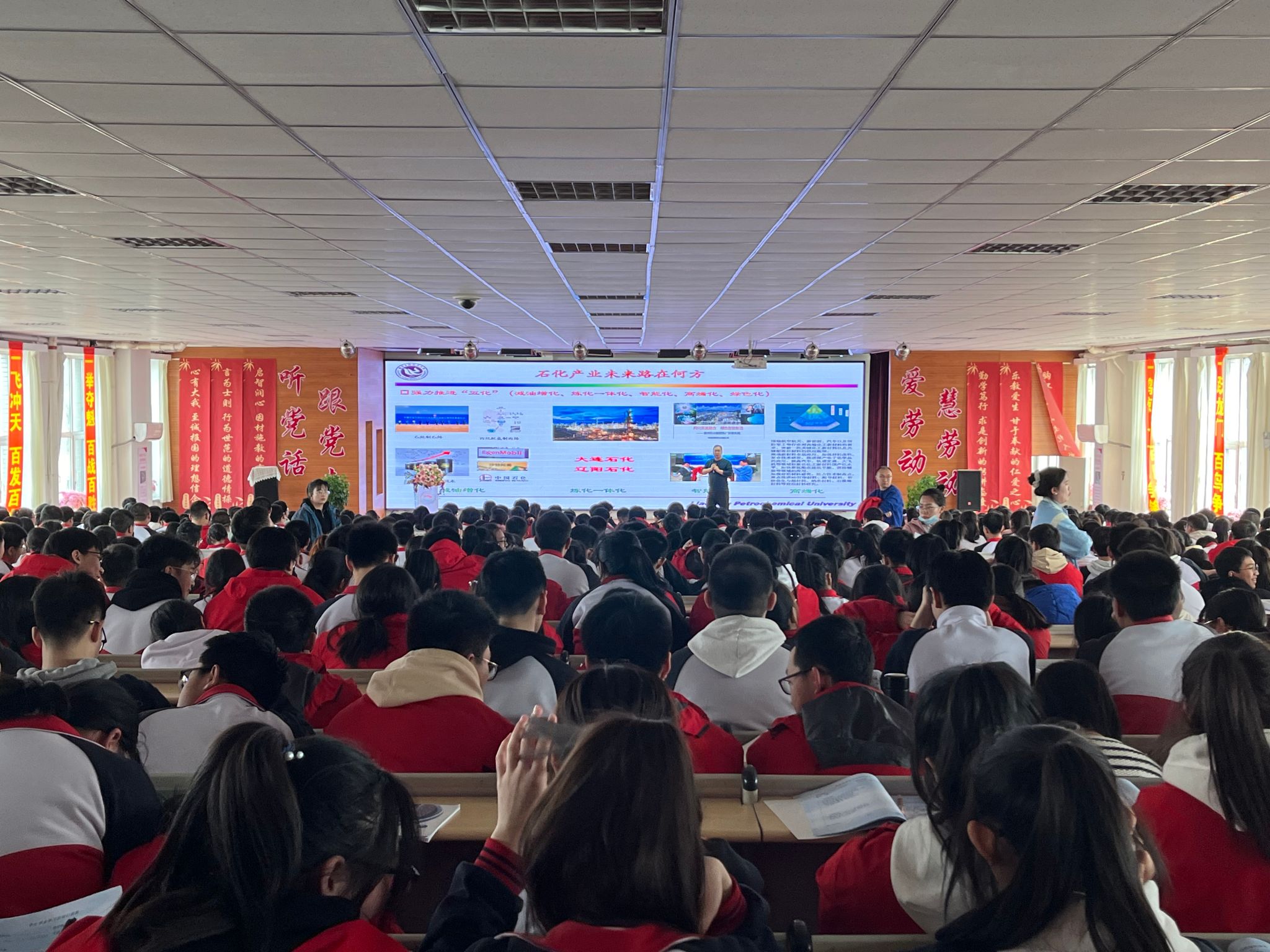 随后,胡跃鑫教授在德才高中大礼堂为高二员工开展题为“认识石油化工行业,为祖国能源安全贡献力量”职业生涯规划讲座。胡跃鑫介绍了理、工、经、管、文、法、教、艺等八大门类主干专业,重点结合公司专业特色阐述石油化工专业的发展前景。在场的师生们对石油化工行业有了全新认识,对公司办学特色和学科发展有了进一步了解。同时激发员工主动建构自己未来职业生涯规划的内驱力,对职业生涯探索有了更清晰的认识。胡跃鑫还通过与员工一系列的互动提问,拉近了与员工的距离,提高了员工们对大学专业的认知。